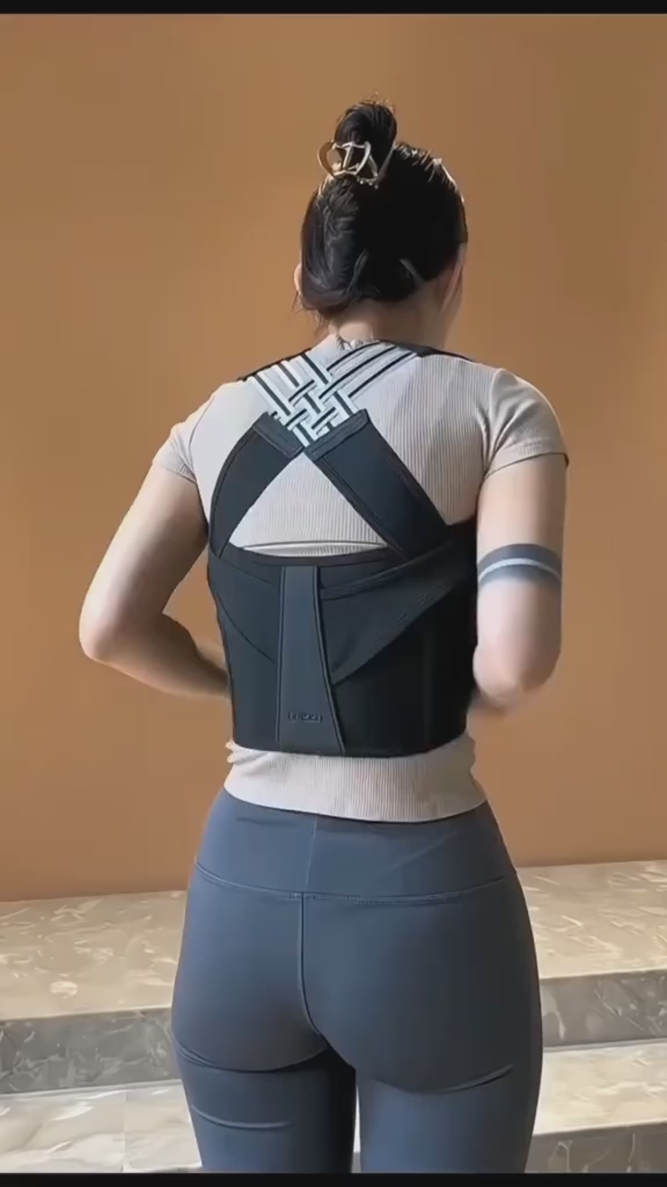 2. Coloque o corretor por baixo da roupa, ajustando para máximo conforto.